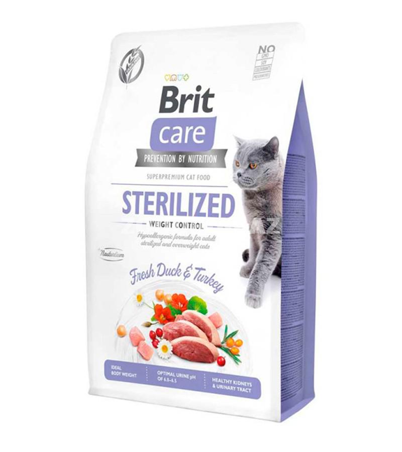 Сухой корм Brit Care Cat Sterilised Hypoallergenic Super Premium гипоаллергенный для кастрированных котов и стерилизованных кошек со вкусом утки и индейки.